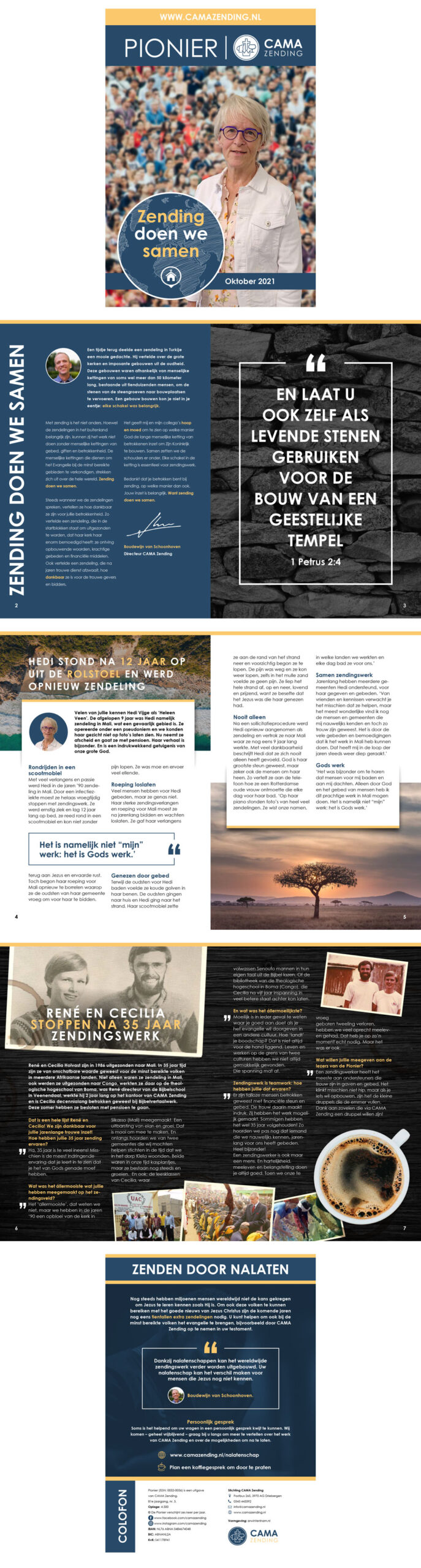 Jaren heb ik voor CAMA Zending de ontwerpen gemaakt voor al hun uitingen. Hier hoorde ook de Pionier bij, hun nieuwsbrief.