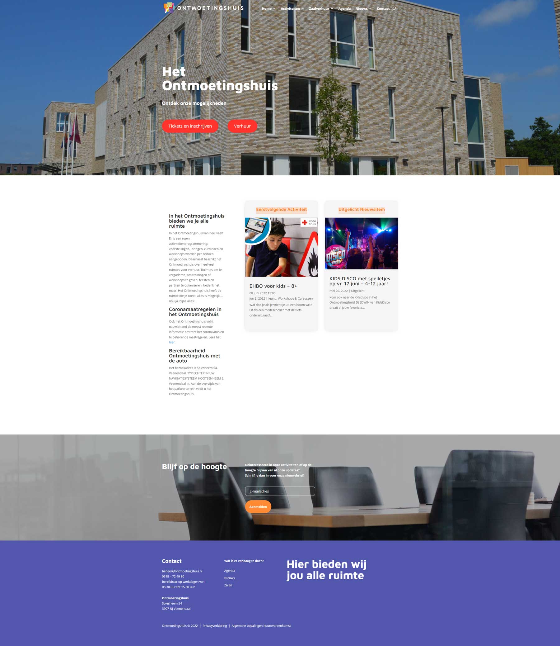 Website ontwerp voor de Ontmoetingshuis Veenendaal toen ik nog in dienst was. Wilde hun aanbod aan cursussen en activiteiten gekoppelt hebben aan de website en op een nette mannier weergegeven hebben.